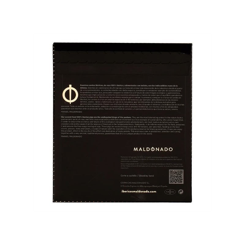 Maldonado to synonim wyrafinowania w świecie iberyjskim. Jego szynka z belloty 100% iberyjska jest uważana za jedną z najbardziej wyrafinowanych na rynku, cenioną przez szefów kuchni, sommelierów i miłośników produktów rzemieślniczych. Format w plastrach zachowuje tę doskonałość, łącząc tradycję, wygodę i nienaganną prezentację Alba Ibérico.